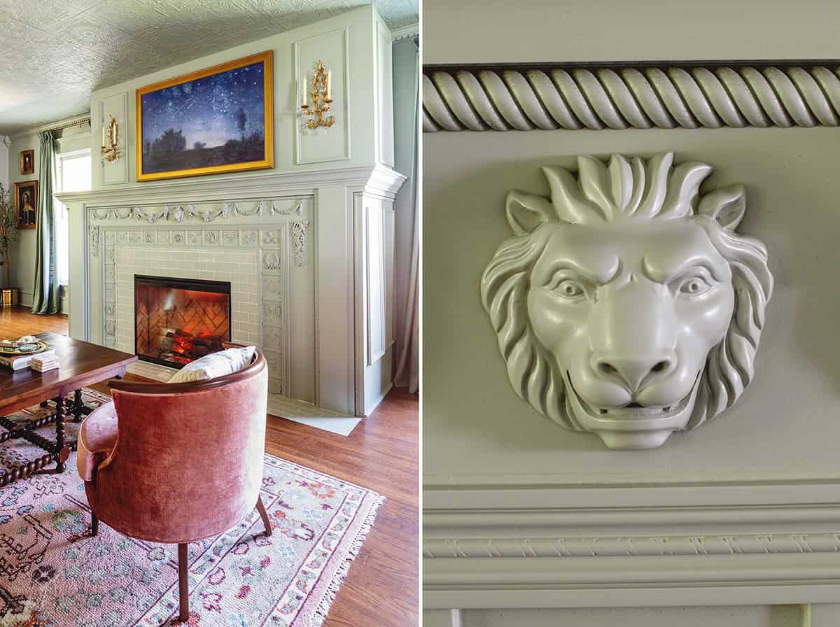 Bedroom Fireplace – In our bedroom, we added a fireplace. For the design, I pulled inspiration from my favorite horror movie, Rosemary’s Baby. We built this fireplace as a replica to the one in her apartment from the movie. When building new pieces, I find it really helps to reference a historic photo and stay as close to it as possible.