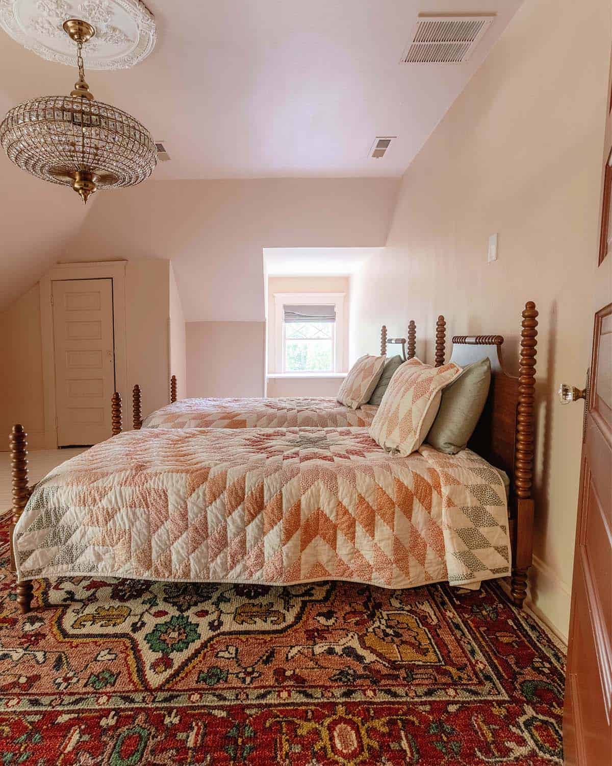Sources: Beds, Rug, Quilt, Chandelier.