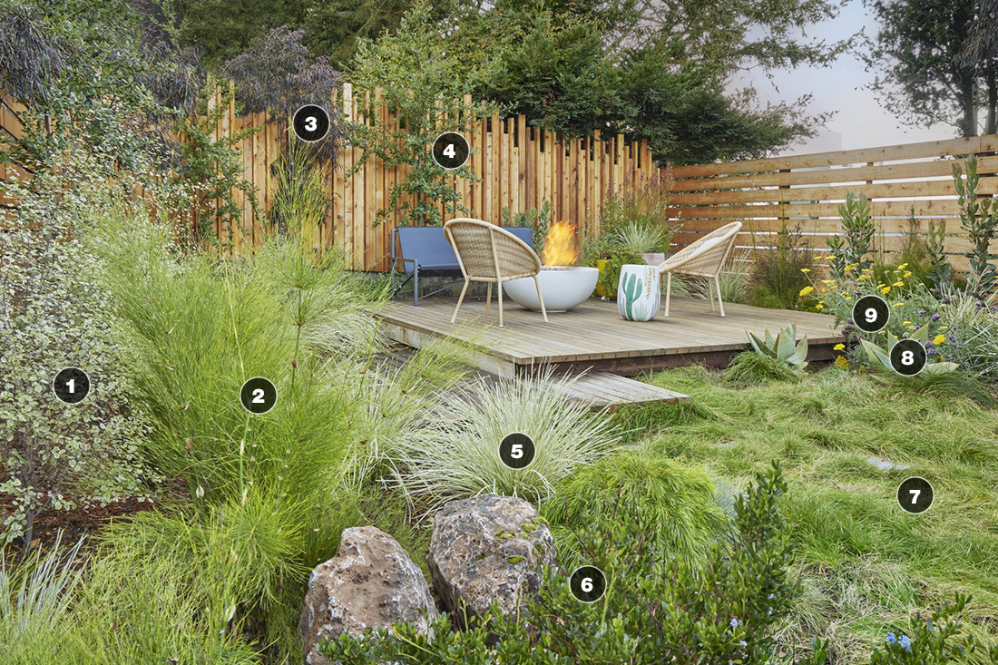 7. No-mow mix of California native fescues (Festuca idahoensis, rubra, and F. occidentalis, Zones 4–10).